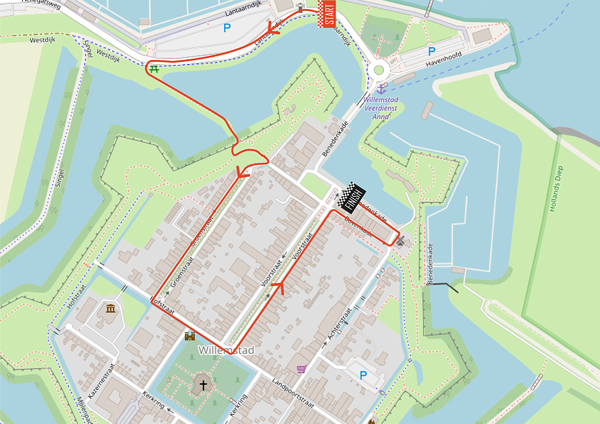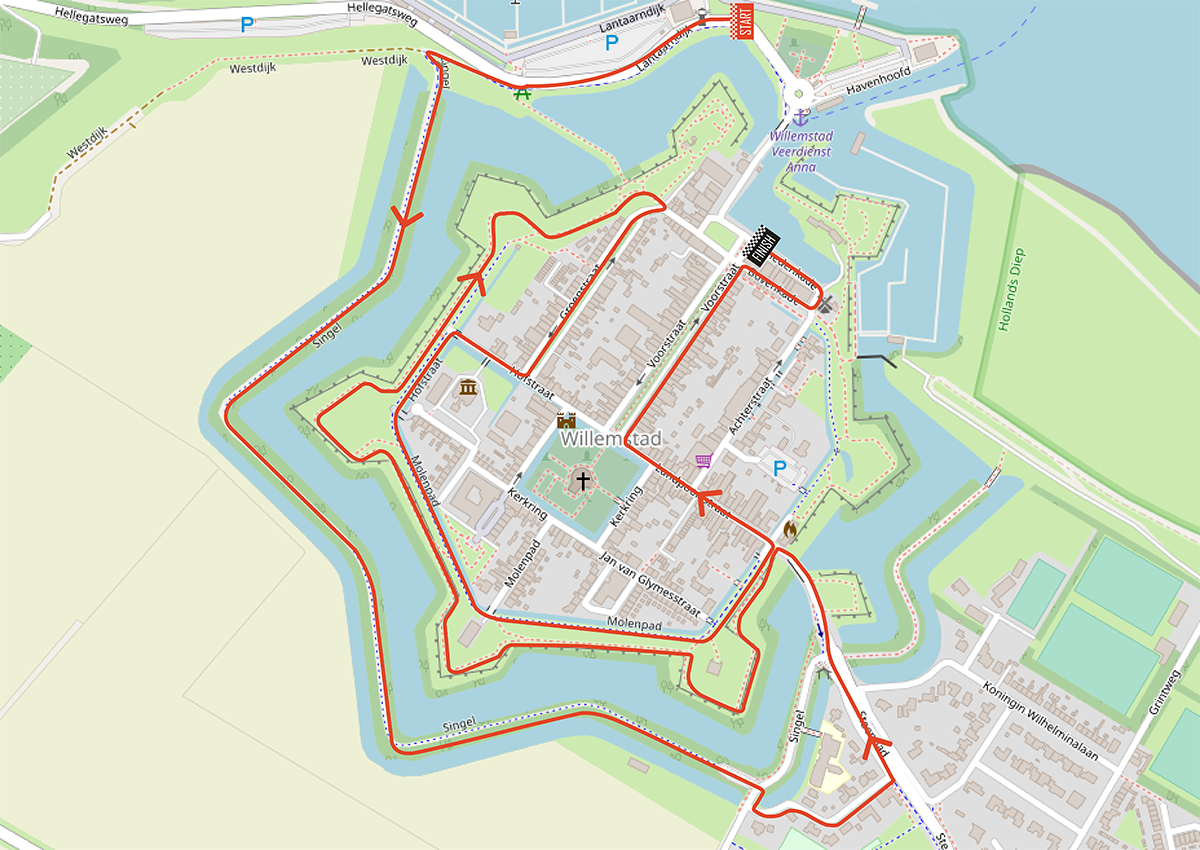 De start is voor de vuurtoren vlakbij de Jachthaven. Vervolgens wordt er langs de prachtige natuur gelopen en over de wallen leg je de hele ster van Willemstad af. De finish is op het Havenhoofd. Geniet van de bijzondere combinatie van natuur, historische plekken en ongekende gezelligheid die Willemstad te bieden heeft!